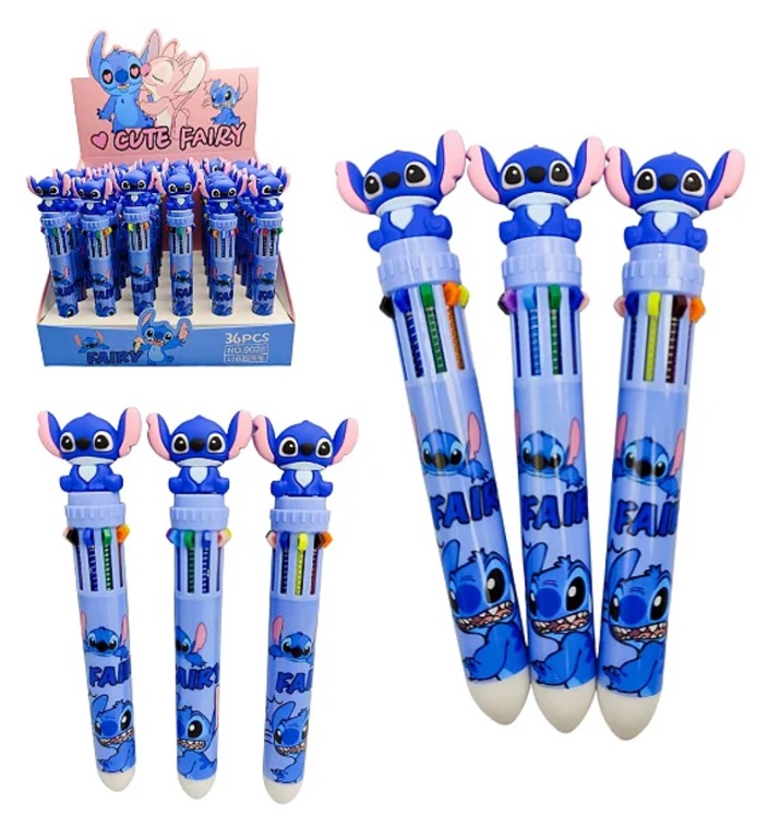 Caneta modelo Stitch com 10 cores.